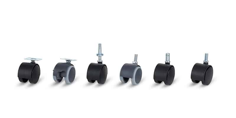 If you are looking for office chair wheels, we’ve got you covered. We supply every type of popular mounting option for these casters including plate mount, threaded stem mount, friction stem mount and grip neck mount. Finding the right replacement wheels for office furniture can be tricky – so if you’re not sure, get in touch with our expert team and we’ll find the ideal solution for you in just minutes.