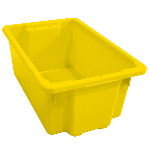 When not in use, our stack & nest crates will slide inside of each other nicely, allowing you to save space. We call this ‘nesting’. In order to achieve the nesting position, place your tubs inside of one another, all facing the same orientation.