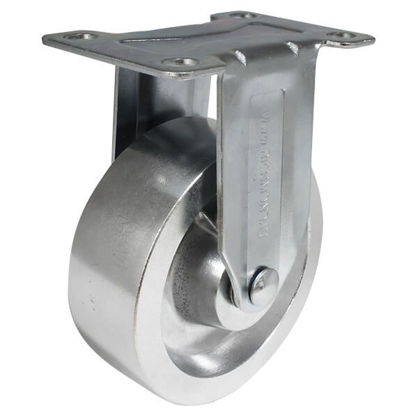 A rigid castor such as this one is generally used for straight line travel however when used with swivel castors, the load can be steered.