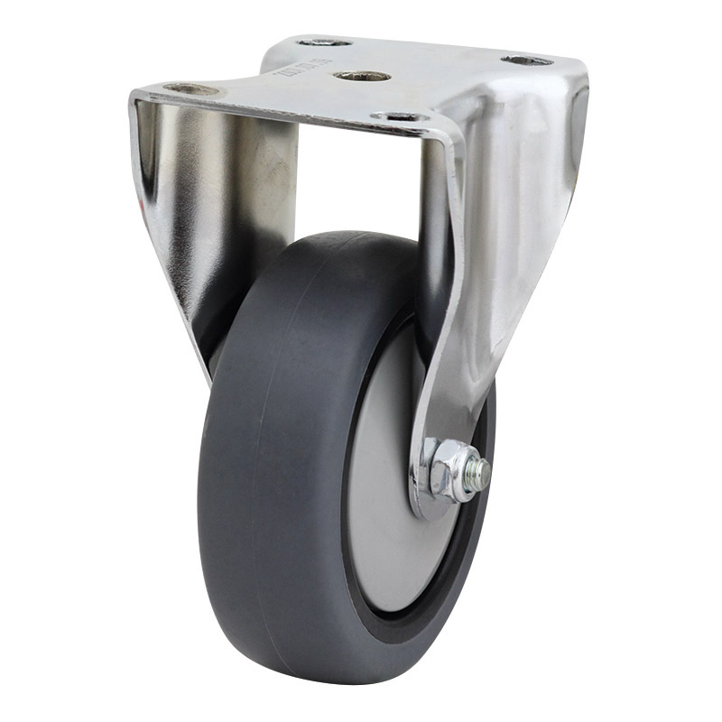 The R4509 by Richmond is a rigid frame castor and has a anti static wheel. This rigid castor is part of our chrome durolite plate range and has a top load capacity of 100kg. The R4509 is assembled with ball bearings on the castors axle and is baseplate mount. This castors rigid frame allows for linear movement and steering can be achieved by using in conjunction with swivel castors. The outside diameter of the anti static wheel is 100mm, the wheel width is 32mm and can be ordered separately (AS4005).