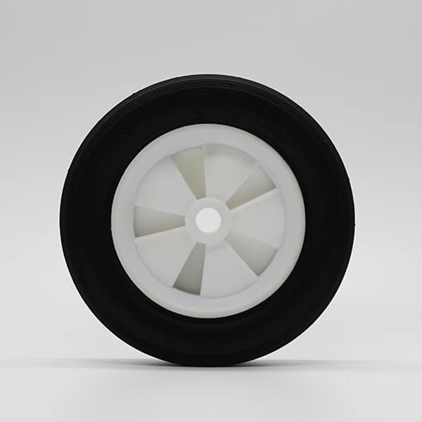 The RN6661-50 manufactured by Richmond Rolling Solutions is a 150mm diameter rubber tyred nylon wheel that can hold loads up to 50kg and has a tyre width of 37mm.The axle diameter is 1/2 inch (12.7mm).