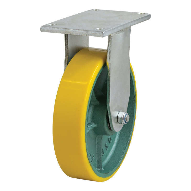 The R8471 by Richmond Rolling Solutions is a rigid frame castor and uses a polyurethane tyred cast iron wheel. This rigid castor is in our 500 series range and can hold loads up to 500kg. The R8471 uses ball bearings for wheel rotation. The rigid frame of this castor is ideal for linear movement however steering can be achieved by using with swivel castors. The diameter of the polyurethane tyred cast iron wheel is 200mm, the wheel width is 50mm and you can order separately (Part Number: PU849).