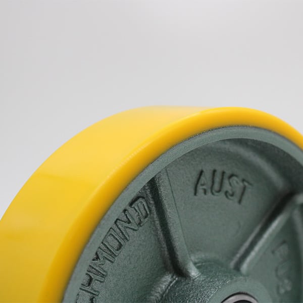 The PU849-50 from Richmond Rolling Solutions is a 200mm diameter polyurethane tyred cast iron centred wheel that can safely take loads up to 600kg and has a tyre width of 50mm.The following Richmond castors use this wheel (not necessarily with the same axle diameter) R8049, S8048, S8048B, R8471, S8470, S8470D, S8470SLB.This wheel is designed to suit 1/2 inch (12.7mm) axles and this wheel is available for the following alternative axle size: 5/8 inch (15.87mm), 3/4 inch (19.05mm), 20mm.