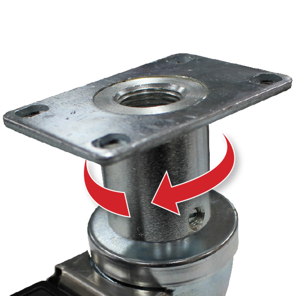 It is ideal for levelling equipment on uneven floors, or adjusting to a height that best suits your working needs. The levelling action is activated by twisting the top of the castor. This castor is most commonly used on kitchen equipment and is suitable for all kids of commercial kitchen and industrial equipment.