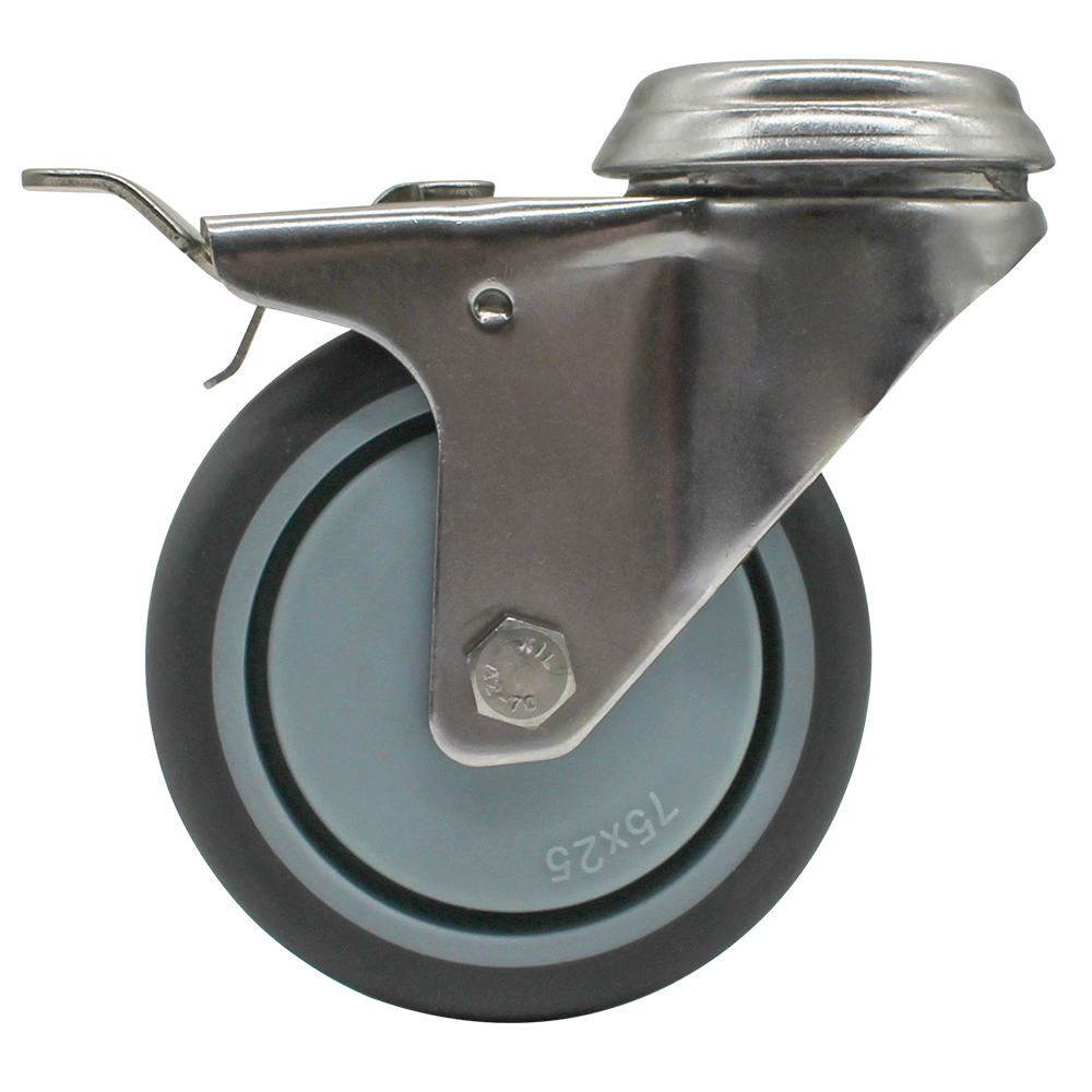 75mm Rubber Wheel 50kg Capacity Stainless Steel Brake Castor (S3728B)
