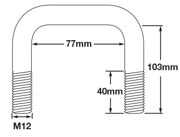 75x50mm U-Bolt to suit Jockey Wheels (UBOLT75X50)