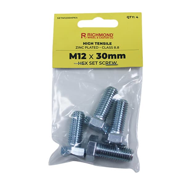 M12 x 50mm High Tensile Hex Set Screw - 4 Pack (SETM1250HPK)