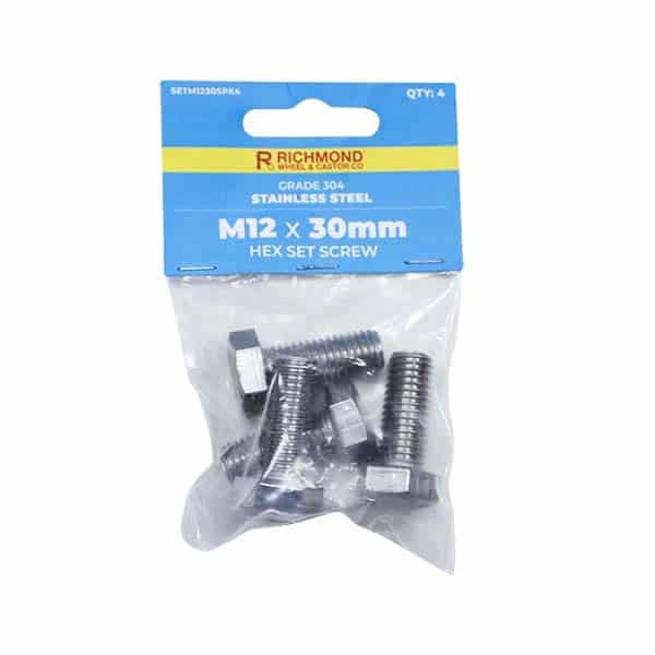 M12 x 30mm Stainless Steel Hex Set Screw - 4 Pack (SETM1230SPK4)