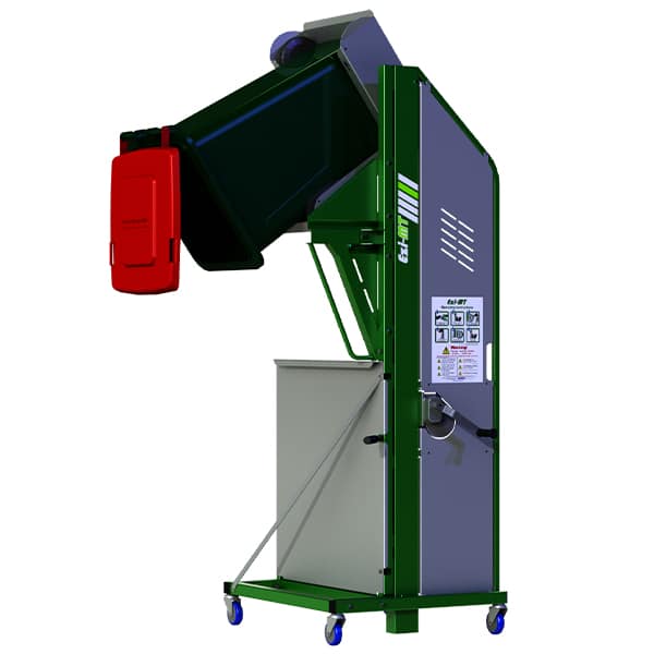 No more heavy manual lifting! The Ezi-MT is designed for low-volume, light-duty applications where a safe and cost-effective method for emptying wheelie bins. Without the strain on the operater from lifting and emptying heavy bins by hand. Perfect for small businesses, schools, cafes, offices, local councils, and more.