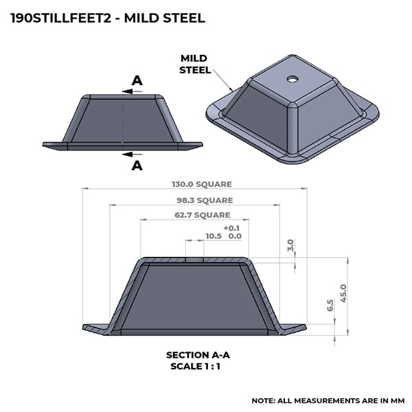 130 x 130mm Square Mild Steel Stillage/Pallet Feet (STILLFEET2)